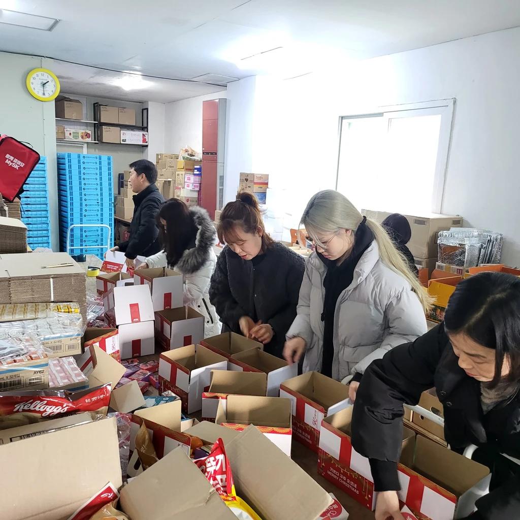 2023년 크리스마스 기념해 외국인근로자, 경로당, 이웃들에게 선물을 준비해 나누는 모습